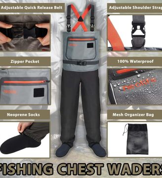 • Fishing Chest Waders for Men and Women, 3-Ply Breathable Waterproof Hunting Waders with Pockets and Neoprene Stocking