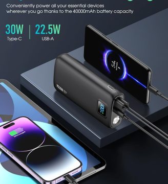 Portable-Charger-Power-Bank – 40000mAh Power Bank PD 30W and QC 4.0 Quick Charging Built-in Bright flashlight LED Display 2 USB 1Type-C Output for Most Electronic Devices on The Market(Carbon Black)