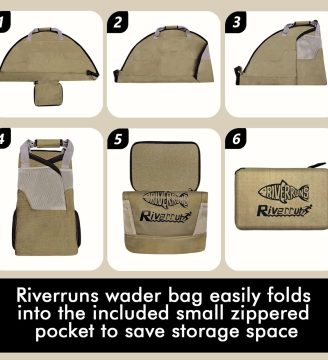 • Riverruns Fishing Hunting Wader Bag with Vented Mesh, Foldable Waders Boots Bag, Fly Fishing Changing Pad & Bag for Fishing, Hiking, Camping (Khaki)